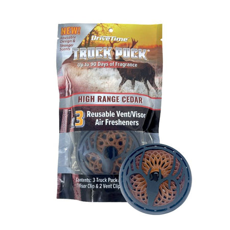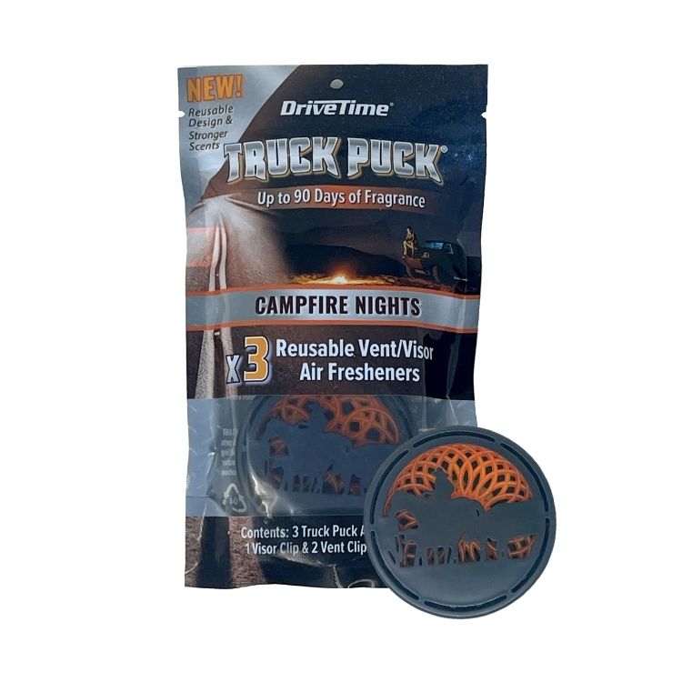 Now it’s time for an upgrade. The Drive Time Truck Puck delivers bold scent in a solid, refillable design that never melts, leaks, or lets you down.