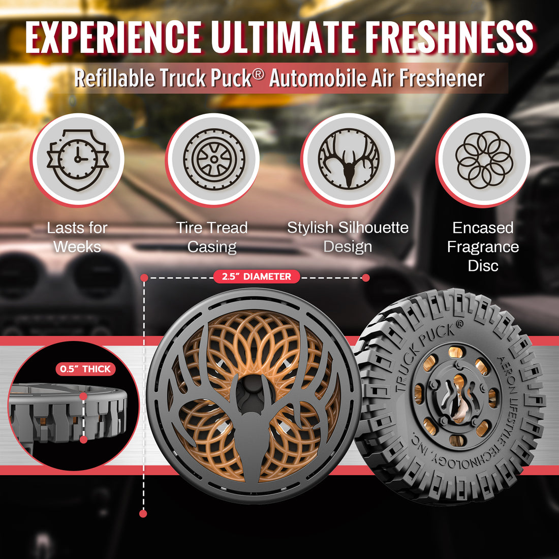 The Truck Puck delivers bold, masculine fragrance in a rugged, refillable format designed to turn heads at the register.